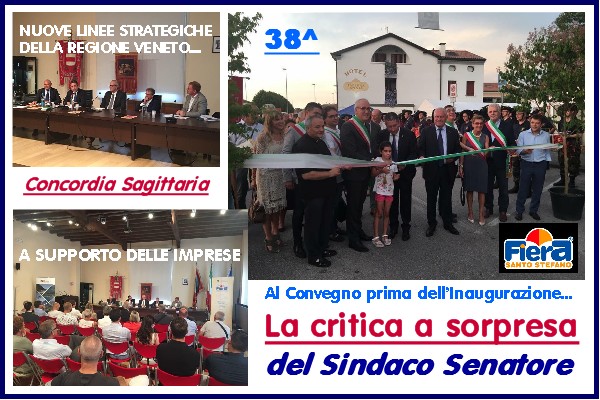 La 38esima Fera di Santo Stefano, evento molto atteso a Concordia Sagittaria, si è aperto ieri, mercoledì 2 agosto, con un Convegno dal titolo: “NUOVE LINEE STRATEGICHE DELLA REGIONE VENETO A SUPPORTO DELLE IMPRESE”, ma inizialmente, nel Comunicato stampa che ha fatto seguito a una Conferenza di presentazione del 8 Giugno (clicca qui), il titolo era: “La semplificazione dei processi amministrativi come strumento per agevolare la ripresa economica delle imprese”, che non è esattamente la stessa cosa, in quanto si è dato più spazio alla Regione Veneto che ha illustrato le sue strategie per agevolare lo sviluppo delle imprese, con relatore il Dott. Mauro TRAPANI – Direttore Area Sviluppo Economico Regione Veneto, e dopo gli interventi previsti, le conclusioni affidate a Gianluca Forcolin, vicepresidente della Regione. (clicca qui).
