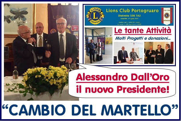 Alessandro Dall’Oro, 70 anni, medico specializzato in chirurgia generale ed endoscopia digestiva, attualmente libero professionista, è il nuovo Presidente del Lions Club di Portogruaro per l’anno 2017/2018.