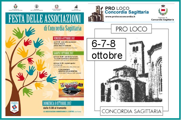 E’ con grande piacere che la Pro Loco di Concordia Sagittaria avvisa che nelle giornate 6-7-8 ottobre si svolgerà la Festa delle Associazioni.