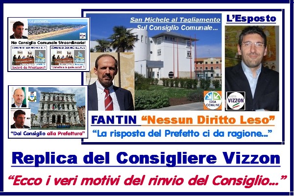 NOTA Credo che la “replica” del consigliere Vizzon non cambierebbe la Risposta del Prefetto, ma il Documento che allega sul parere legale richiesto da Comune di San Michele sulla cessione delle quote della “Bibione Spiaggia” di cui è Socio, sia cosa assai interessante dal punto di vista politico /amministrativo, anche per “gli addetti ai lavori”…