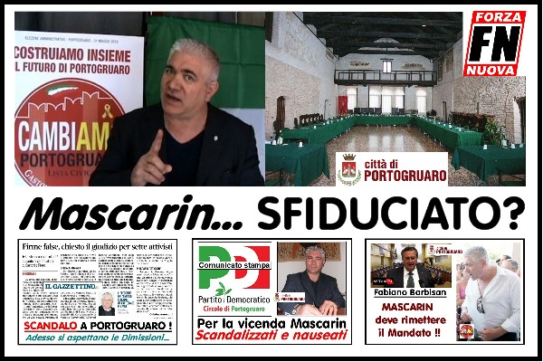 Oggi, martedì 7 novembre 2017, siamo all’atto finale (politico) sulla vicenda che ha coinvolto Gastone Mascarin, che in qualità di Consigliere comunale ha autentificato nel 2015 delle Firme false di Forza Nuova, che si presentava alle Elezioni Regionali (Veneto) e Comunali (Venezia), per questo fatto Mascarin ha subito un Processo patteggiando 6 mesi, insieme al lui anche Angelo Lauritano, che fa parte della sua Lista civica “CambiAmo Portogruaro”, di cui non conosciamo l’entità del patteggiamento, ma di entrambi nemmeno i dettagli e le circostanze di cui sono stati imputati.