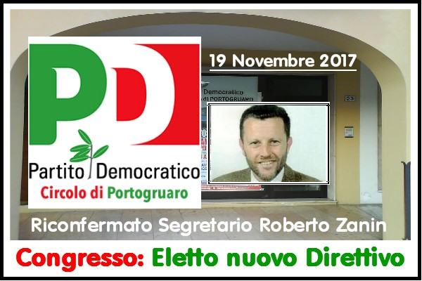 Proponiamo di confermare come Segretario del circolo di Portogruaro ROBERTO ZANIN – perché in questi 4 anni circa di impegno ha dimostrato un radicamento nel territorio, una capacità di relazionarsi con tutti, doti che saranno utili anche alle prossime elezioni politiche. C’è la volontà di ricercare nel prosieguo, sulla base delle opportunità che si manifesteranno, di far emergere un avvicendamento naturale, che sappia garantire le caratteristiche di impegno del Circolo ed affrontare nuove sfide.
