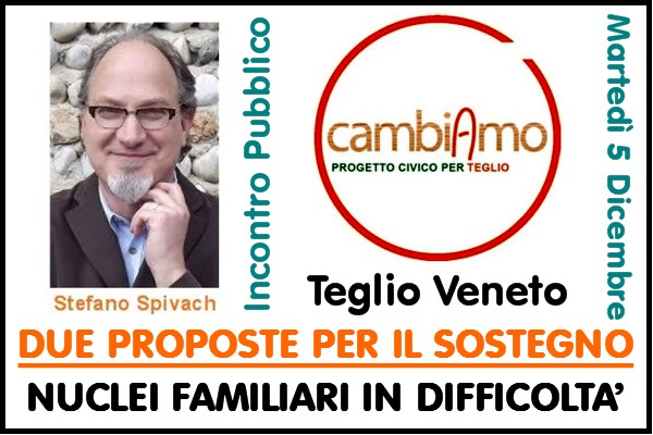 QUESTA INIZIATIVA VERRÀ PRESENTATA A CITTADINI E NEGOZIANTI MARTEDÌ 5 DICEMBRE 2017 ALLE 20:45 IN SALA CONSILIARE A TEGLIO VENETO.