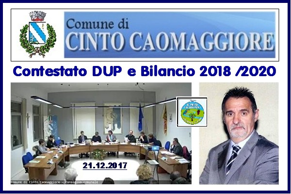 NOTA – L’ex sindaco di Cinto Caomaggiore Renato Querini, ora Consigliere Comunale, mi ha fatto pervenire un Comunicato stampa (clicca qui) dove boccia di brutto la recente approvazione del Bilancio 2018 – 2020, nei Pdf le sue Domande (clicca qui) e il suo Intervento (clicca qui) nel Consiglio Comunale del 21.12.2017 come Capogruppo della Lista civica “IL PAESE CHE VOGLIAMO – UNITI SI PUO’ “.