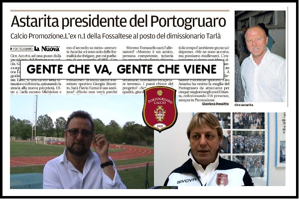 Vi consiglio di guardare le interviste qui sotto, dove si possono cogliere molte cose sulla situazione in essere e quella a divenire, nel video di Tarlà (clicca qui) gli “spunti” più interessanti, dove racconta “tutta la verità” sul Portogruaro calcio, sulle difficoltà di gestione e le risorse economiche che servono per fare un Campionato di Promozione, poi abbiamo il mister Bruno Gava (clicca qui), che tira le somme di questo Campionato appena concluso, giudicato positivo, si augura che la Società faccia delle scelte giuste per dare alla Città di Portogruaro quei palcoscenici calcistici che merita, che la nuova Proprietà tenga conto di chi ha lavorato bene, e che lui per il prossimo anno non ha ancora preso accordi con nessuno, per chi vuol capire…