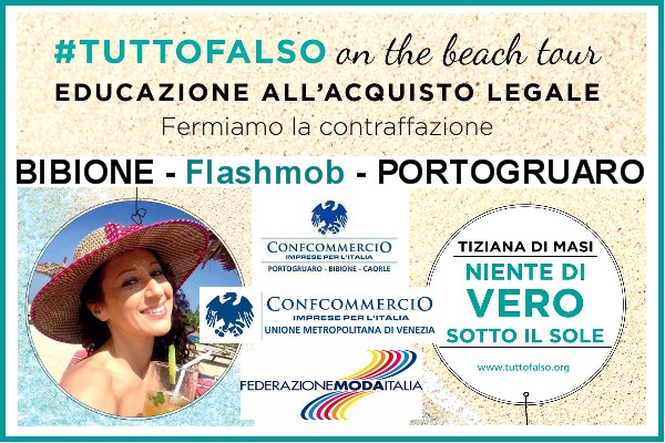 In Italia la contraffazione colpisce moltissimi settori, dagli alimentari all’abbigliamento, dai prodotti informatici ai farmaci. Secondo i dati più recenti, il mercato della contraffazione vale circa 6,9 miliardi di euro e 110 mila posti di lavoro. Un danno economico enorme, che spesso è accompagnato anche da gravi rischi per la salute dei consumatori. Confcommercio e Federazione Moda Italia sostengono da anni progetti di educazione all’acquisto legale e responsabile, non solo attraverso le famose giornate nazionali “Legalità mi piace”, ma anche attraverso l’azione informativa denominata “Tutto quello che sto per dirvi è falso” di Tiziana Di Masi, dedicata all’argomento della lotta alla contraffazione e all’abusivismo commerciale, che ha già oltre 180 date all’attivo in tutta la nazione, con appuntamenti dai Comuni alle Scuole, dalle Associazioni di impresa fino alla presentazione il 26 maggio 2015 alla Camera dei Deputati. Ora lo spettacolo riparte da Bibione e passa per Portogruaro con la nuova veste di “Niente di vero sotto il sole” .
