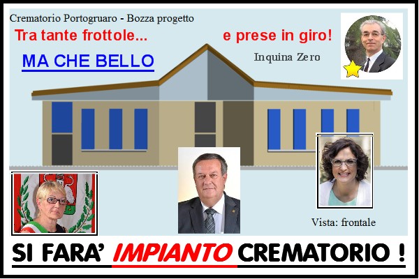 E’ di ieri la pubblicazione sulla stampa locale (clicca qui) della notizia del via libera alla costruzione di un Tempio Crematorio nel Portogruarese a seguito dell’approvazione di un Emendamento presentato in Regione Veneto dal consigliere Fabiano Barbisan, di area leghista, con buona pace alle “rassicurazioni” della consigliera, capogruppo e segretario locale Alessandra Zanutto, che ha sempre parlato ai IPOTESI (clicca qui), evidentemente ci considerano dei deficienti, o non si rendono conto di quello che dicono e scrivono…