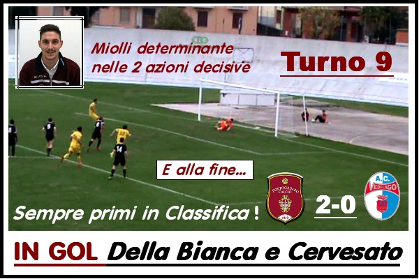 Bene così, ma mi sembra che il mister Giuseppe Vittore, non abbia ancora trovato la soluzione a quello che vorrebbe proporre come modulo di gioco, in quanto in queste nove partite non si è mai giocato con gli stessi giocatori, per un motivo o l’altro, ma questo non vuol dire che sia per forza un male, abbiamo una rosa di giocatori ampia e di qualità, avranno modo così di mettersi in evidenza, e voglia di farsi trovare sempre pronti se chiamati in campo, l’importante è mantenere uno spirito di spogliatoio unito e sereno, che è l’unica arma veramente indispensabile in questo Campionato (del Centenario) per raggiungere i traguardi prefissati…
