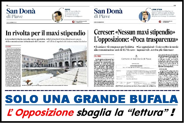 Certo che ha dell’incredibile quanto è successo a San Donà di Piave, un festival, anzi no, una sagra di superficialità e incompetenza sfoggiata come niente fosse, e a mio avviso senza rispetto verso il cittadino, utente finale di notizie che sono non-notizie, anzi, vere BUFALE, inaccettabili se a diramarle sono dei Consiglieri comunali che per ruolo istituzionale pubblico dovrebbero prima bene informarsi e comprendere, per poi correttamente divulgare…