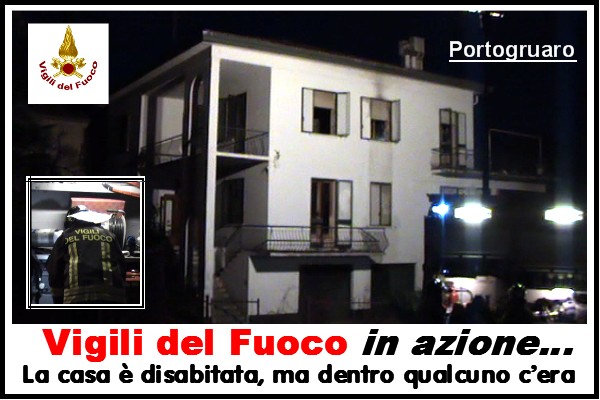 Portogruaro, domenica 16 dicembre 2018, in Viale Matteotti nella grande casa disabitata accanto ex Bergamin, intervengono i Vigili del Fuoco per spegnere un principio d’incendio con possibile fuga di gas, tutte le porte e finestre dell’abitazione vengono aperte per arieggiare i locali… ore 17,15 ormai si è fatto buio, i Vigili del Fuoco, equipaggiati per l’emergenza con bombole d’ossigeno e mascherina per i fumi, alla luce dei riflettori e con le torce hanno controllato che all’interno non ci fosse nessuno…