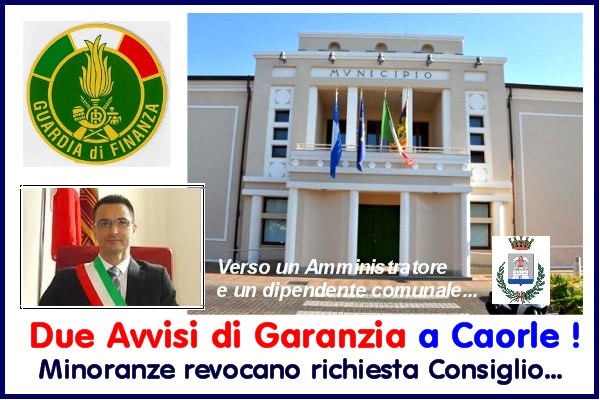 Premesso che un Avviso di Garanzia non equivale a colpevolezza, ma dopo le recenti perquisizioni della Guardia di Finanza in Municipio a Caorle e a casa del Sindaco Luciano Striuli, c’è già chi pensa sia lui uno dei destinatari, ma quel che più inquieta, e che siamo solo all’inizio e niente è trapelato dalle indagini in corso… Sotto il Comunicato stampa (clicca qui) dei due Gruppi consiliari di Minoranza, che a seguito di quanto emerso in Conferenza dei Capigruppo, hanno deciso di revocare la richiesta di un Consiglio comunale straordinario…