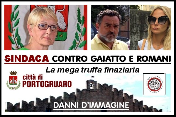 Nel Comunicato però non si fa nessun accenno di una consultazione all’Avvocato della Città Metropolitano di Venezia che il Comune ha a disposizione, e nemmeno di quanto ci costerà questa azione legale che difficilmente vedrà un risarcimento del danno, in quanto soldi non ce ne sono, puff, tutti spariti… e nemmeno nessun accenno al famigerato Blogger reo anche lui di DANNI D’IMMAGINE alla città di Portogruaro, come appreso da una Determina del 07.02 2019 (clicca qui), resta da capire ora come valutare politicamente l’appoggio di un Consigliere di Maggioranza alla Venice Investment di Fabio Gaiatto / Najima Romani, anche dopo che erano emerse le denunce sul loro operato (clicca qui)… ma sul discorso politico su questa vicenda, questo “caso Gaiatto” che ha messo in luce un mega truffa milionaria con oltre 67 milioni di euro investiti e in gran parte spariti, merita di essere approfondita, va capito se c’era la possibilità di intervenire e se sono stati messi in atto tutti gli strumenti istituzionali che una Amministrazione comunale / Ente pubblico possiede, perchè qualche legittimo dubbio viene, tutti ne parlavano da tempo in città e nei Social, ma in Consiglio comunale nulla è mai arrivato, nemmeno dall’Opposizione, tutt’ora silente anche dopo i clamorosi fatti di MAFIA di Eraclea che ha visto il suo Sindaco andare in GALERA, ma niente nessuno ne parla nemmeno adesso, eppure fa parte del nostro territorio e sedeva in Conferenza dei Sindaci del Veneto Orientale…