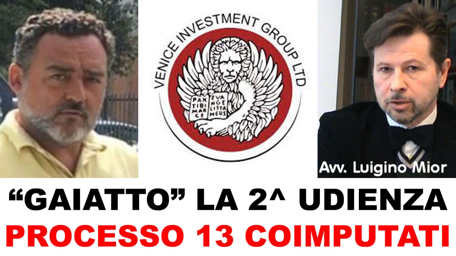 Il giorno 8 Ottobre u.s. si è invece aperto avanti il Tribunale in composizione collegiale (presidente Dott. Rossi, giudici a latere Dott.ssa Binotto e Dott.ssa Tesco) il processo nei confronti dei sodali del Gaiatto, e dicesi i 13 coimputati per i reati di truffa, associazione a delinquere, ecc. , come meglio specificati nei capi d’imputazione contestati dalla Procura.