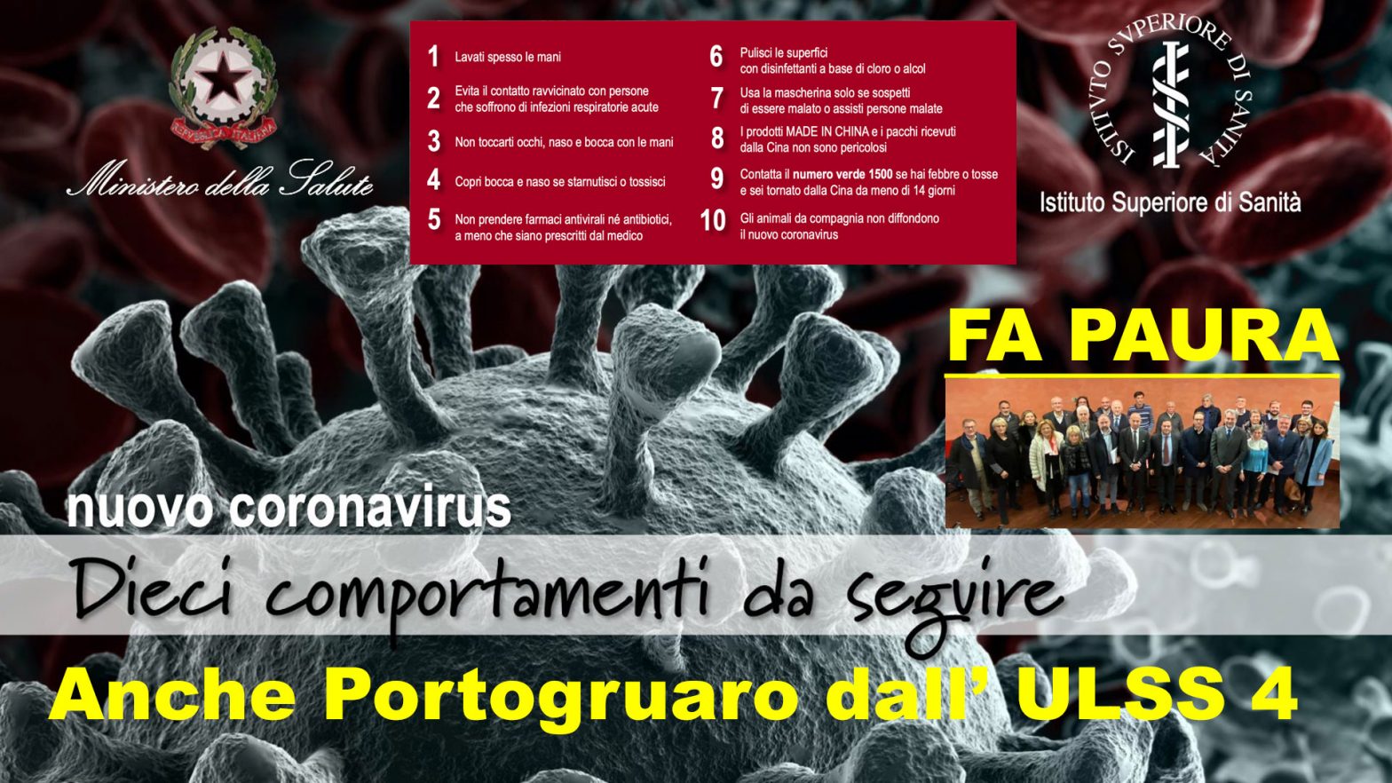 Di seguito i Comunicati del Comune di Portogruaro e ULSS 4 V.O. postati ieri su Facebook e nei Pdf a fondo pagina 10 utili consigli del Ministero della Sanità (clicca qui) su come prevenire il nuovo coronavirus, poi degli utili consigli ai viaggiatori internazionali di ritorno da aree a rischio della Cina (clicca qui), delle utili risposte chiarificatrici sull’uso della mascherina di protezione (clicca qui) e infine delle risposte se è pericoloso mangiare cinese (clicca qui).