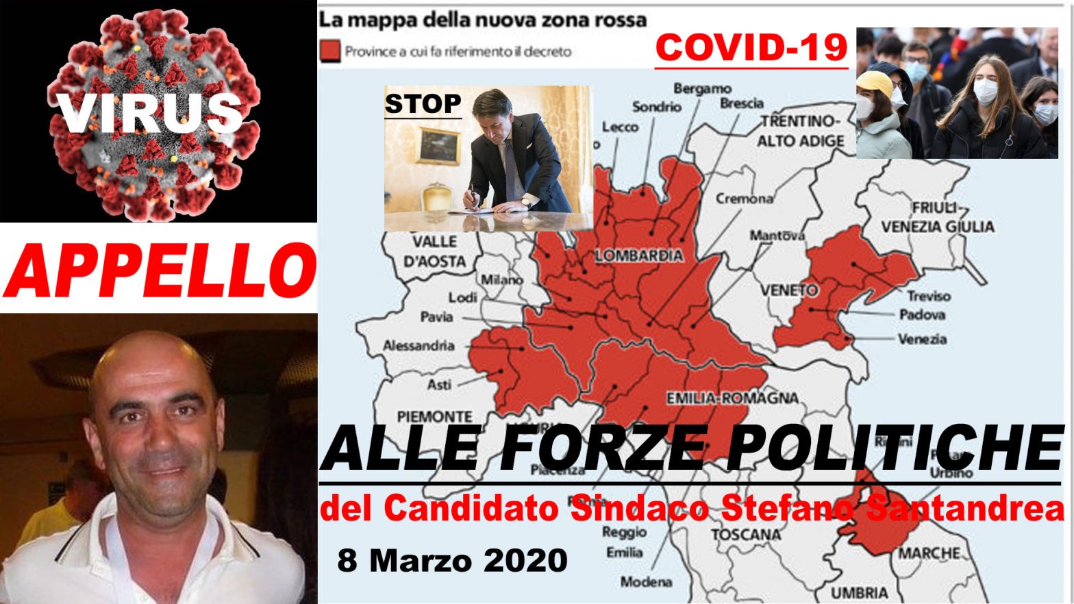 NOTA – Al momento della diffusione del Comunicato stampa (clicca qui) del Candidato sindaco Stefano Santandrea, ancora non si sapeva dei 10 nuovi contagiati da coronavirus, successivamente resi noti dall’Ulss 4 V.O. in un Comunicato stampa… (clicca qui)