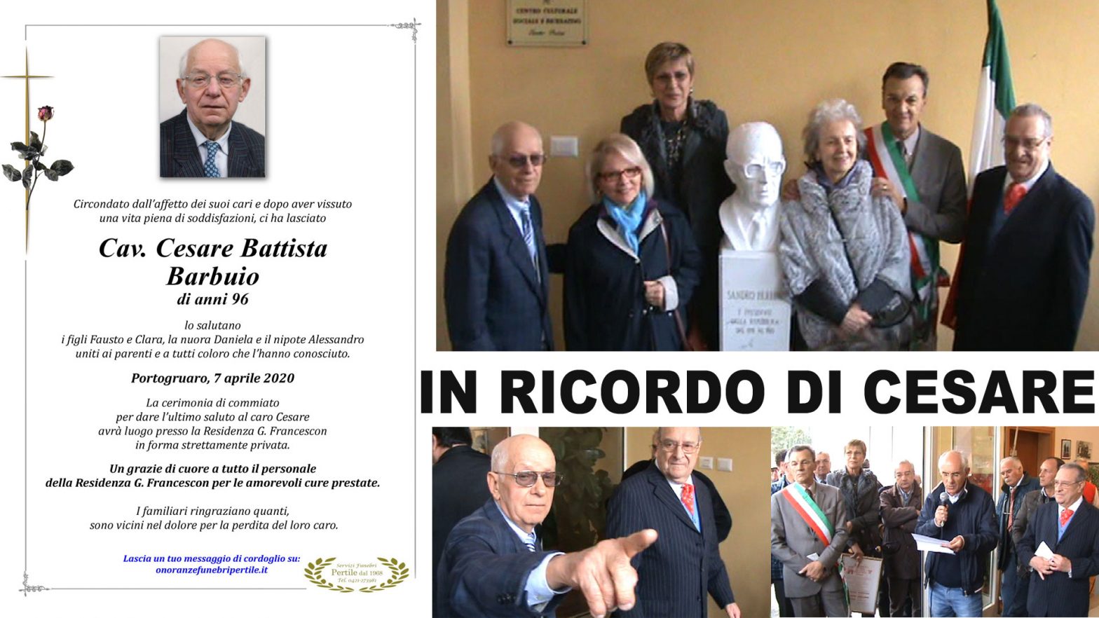 Il cav. Cesare Battista Barbuio era figura molto conosciuta e nota a Portogruaro, fondatore della “Barbuio Sport”, mi ricordo che da ragazzino andavo a comprare le scarpette da calcio nel suo negozio in Via Manin, sito nel Condominio “Torre 61”, a due passi da casa mia, successivamente negli anni spostato nella struttura condominiale (Riviera) di Via Bon, un centinaio di metri più avanti, dove una volta c’erano la Stazione delle corriere e l’Hotel Perosa, erano altri tempi e un’altra Portogruaro…