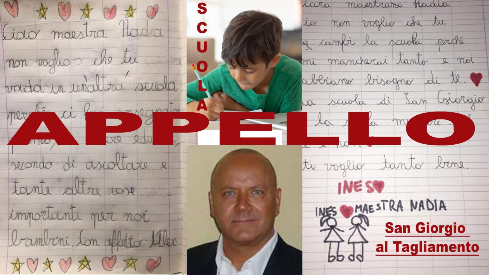NOTA – Ecco un caso che sta già facendo discutere, ALUNNI E GENITORI chiedono di non trasferire due Maestre dalla Scuola primaria di San Giorgio al Tagliamento, lo fanno con un Documento indirizzato ai Dirigenti preposti, al Sindaco Pasqualino Codognotto e all’Assessore regionale Elena Donazzan, lo scritto è firmato dai Rappresentanti dell’istituto scolastico con allegate una serie di Letterine molto dolci e toccanti firmate dai bambini stessi (clicca qui), interviene anche il Consigliere comunale Giampietro Bandolin che espone il “caso” per renderlo pubblico (clicca qui) e scrive anche al presidente Luca Zaia (clicca qui), una vicenda che vede al centro del contendere dei bambini molto legati e affezionati alle loro Maestre, ma sembra che non ci sia spazio per i sentimenti, ci sono dei Regolamenti e vanno rispettati, ma la Scuola non dovrebbe essere al servizio di chi deve educare? Certo, non vanno assecondati “capricci”, ma se si danno delle valide motivazioni bisogna anche saper trovare delle soluzioni… purtroppo non in questo caso, a quanto pare e scrive la Dirigente dell’Istituto Comprensivo “Tito Livio” Angela Cecere (clicca qui), inquanto “…è emerso che disposizioni del Ministero dell’Istruzione non prevedono al momento la possibilità per le docenti di rientrare in questa sede scolastica. La scrivente dirigente opererà tutte le soluzioni che si renderanno possibili per quanto di competenza per limitare il più possibile il configurarsi di una situazione di disagio per gli alunni.”
