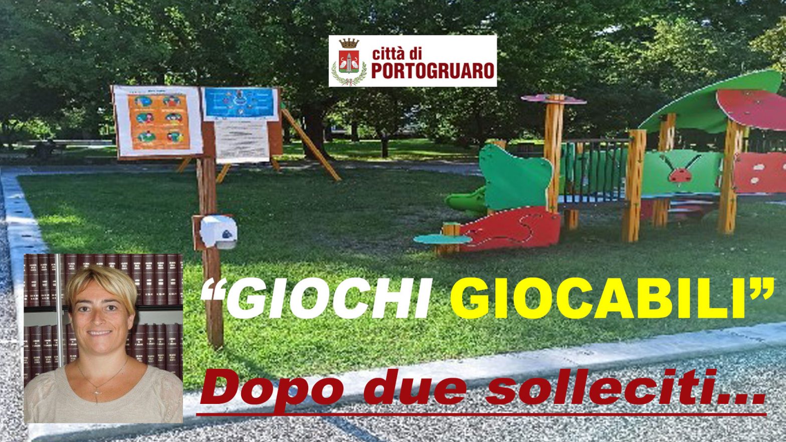 NOTA – Dopo due solleciti inoltrati al Comune di Portogruaro e al presidente del Consiglio comunale Gastone Mascarin, dalla consigliera Alida Manzato, entrambi rimasti senza risposta alcuna, il 3 e il 5 giugno, per avere risposta sulla fruibilità delle aree giochi per bambini (clicca qui), oggi si apprende dal Sito comunale (clicca qui) che al Parco della Pace si può tornare a giocare, notizia che già circolava su Facebook dove si ringraziava la consigliera Alessandra Zanutto (?!), misteri della rete e dimenticanze della Sindaco…