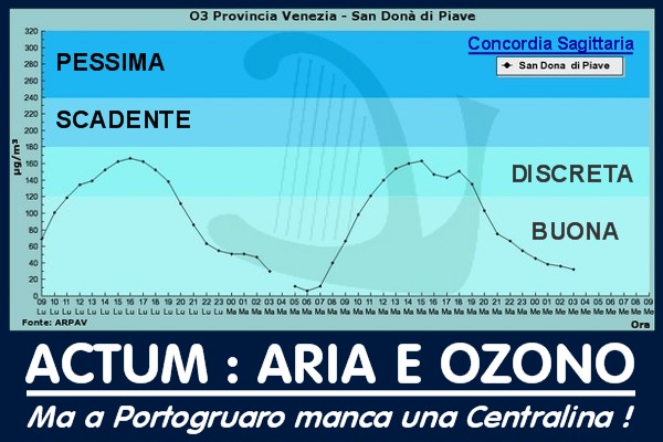 Le Centraline Arpav di misurazione della qualità dell’aria che respiriamo a noi più vicine, sono a San Donà di Piave e Concordia Sagittaria, pertanto non è dato sapere come sia quello che respiriamo a Portogruaro, e dicano pure che non cambia molto…