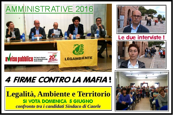 Pertanto si capisce la Proposta ai 4 Candidati sindaco di Caorle da parte di Legambiente Veneto Orientale e Avviso Pubblico, di firmare una “Carta di Caorle” sulla Legalità, trasparenza e lotta alle Ecomafie… (*)