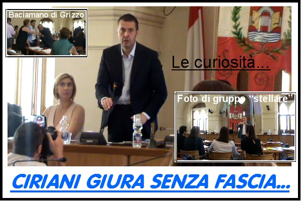 LA CRONACA Doveva iniziare alle 10 in punto il primo Consiglio Comunale di insediamento del neo sindaco Alessandro Ciriani e la sua Giunta, invece, al di là dell’orario mattutino insolito, si è partiti con 15 minuti di ritardo, sala strapiena e un caldo veramente torrido, reso ancora più infernale dal mal funzionamento dell’aria condizionata, così nell’attesa si sono visti girare boccheggianti i Consiglieri comunali, sia i debuttanti che i veterani, che si scambiavano baci, abbracci strette di mano (sudate) e foto ricordo…