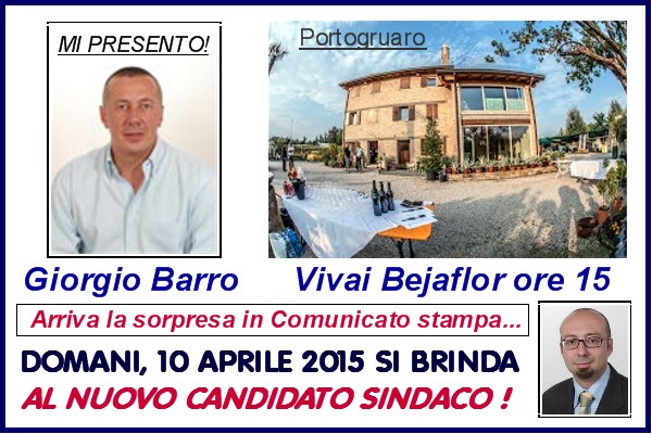 Giorgio Barro è il candidato Sindaco delle liste Io Lavoro per Portogruaro, Insieme per il Nostro Territorio, Portogruaro Adesso! e della Lista Civica che fa riferimento al Consigliere Artino.