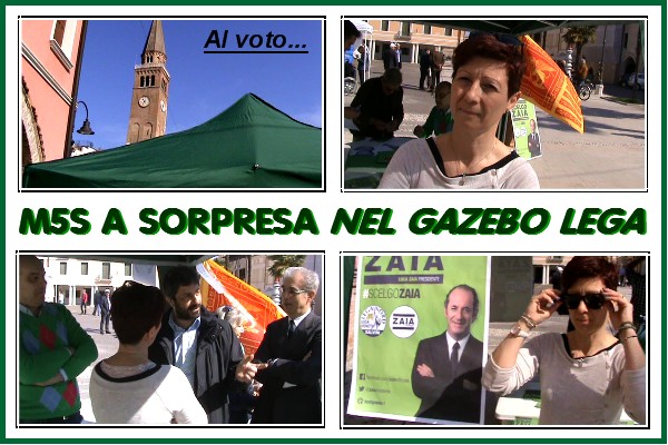 Roberto Fico, deputato del Movimento 5 Stelle, si ferma nel Gazebo confinante della Lega Nord e conversa di politica con Alessandra Zanutto, segretario locale Lega Nord per Portogruaro e Concordia…