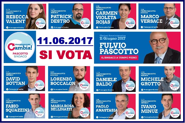 Si comunica che partecipa alle prossime Elezioni amministrative per il Comune di Pramaggiore la Lista CIVICA PRAMAGGIORE CAMBIA!, prima presentata in Comune, guidata dal Candidato sindaco PASCOTTO FULVIO. Gli altri Candidati sono: