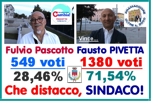 Tornando all’esito del voto, assodato la vittoria schiacciante di Pivetta con la sua Lista civica a trazione Centrodestra, gli va dato atto che è stato molto prudente e cauto nelle dichiarazioni, sia prima che dopo il voto, ha avuto rispetto dell’avversario e si è posto con umiltà al giudizio degli elettori, anche se i numeri e statistiche precedenti avrebbero potuto indurlo ad un comportamento più spavaldo, e credo che anche questo abbia contribuito alla sua vittoria, oltre che ad un Programma ben spiegato e distribuito anche in Cartaceo in forma di libretto in tutte le case e famiglie di Pramaggiore centro e Frazioni, non da ultimo, anche la mano ricevuta dai tre Big politici Zaia, Brunetta e Brugnaro, che come si dice, tutto aiuta… (clicca qui)