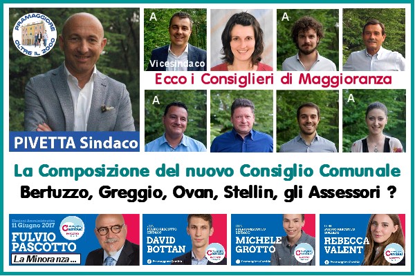 Veniamo ora alla Composizione delle due squadre dei Consiglieri comunali stabilite dal voto dei cittadini, iniziando dalla Maggioranza: Marco Bertuzzo (184), Manuela Barbiero (87), Marco Greggio (168), Renato Mattiuzzo (91), Marco Ovan (82), Pietro Pauletto (62), Alberto Piccolo (62), Alessia Stellin (66), e poi la Minoranza: Fulvio Pascotto (ex Candidato sindaco), David Bottan (102), Michele Grotto (37), Rebecca Valent (27).
