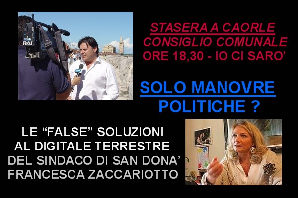 Per stasera, dopo cena , troverete il video del Consiglio Comunale di Caorle