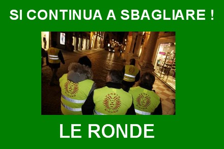 Le Ronde, 1 certezza e 1.000 pericoli, questa in sintesi la mia opinione su questa introduzione nel DDL sulla Sicurezza del Governo, che così attesta il suo fallimento come Istituzione, Cittadini che devono difendere altri Cittadini, assurdo e pericoloso, molto pericoloso… ( UIL del FVG, Luca Visentini dice ” Le ronde sono inutili e dannose” )