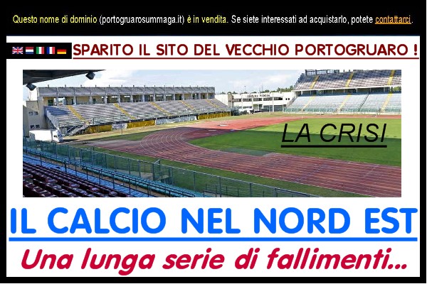 Ebbene, con mia grande sorpresa ho visto che è sparito il Sito Storico, e al suo posto una schermata “generica” e in alto, ad inizio pagina, la scritta con questa dicitura: Questo nome di dominio (portogruarosummaga.it) è in vendita. Se siete interessati ad acquistarlo, potete contattarci. (clicca qui)