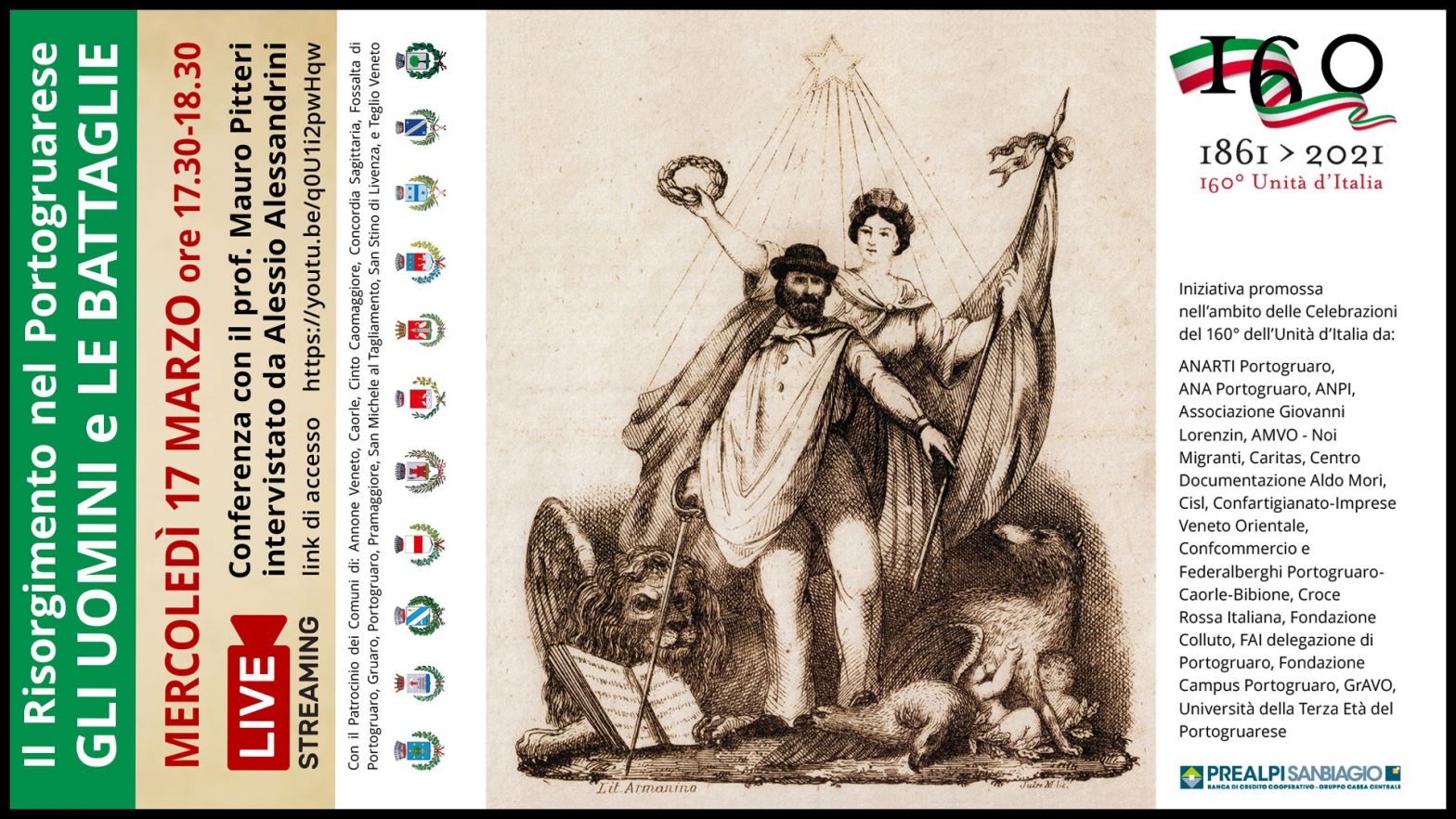17 marzo 2021. Il Portogruarese celebra i 160° dell’Unità d’Italia con una Pubblicazione e una Conferenza streaming (clicca qui).