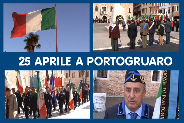 Celebrazioni del 25 Aprile a Portogruaro. Si inizia partendo da Piazza della Repubblica, e passando per via Roma, si va fino al piccolo Tempietto di Sant’Ignazio per depositare una Corona d’alloro ai caduti Portogruaresi di tutte le guerre, si passa poi in Villa Comunale con un’altra Corona d’alloro per i caduti della resistenza, i cui nomi sono incisi sulla Lapide che si trova nel Portico della foresteria, terminate le due brevi Cerimonie ci si incammina verso il punto di partenza…